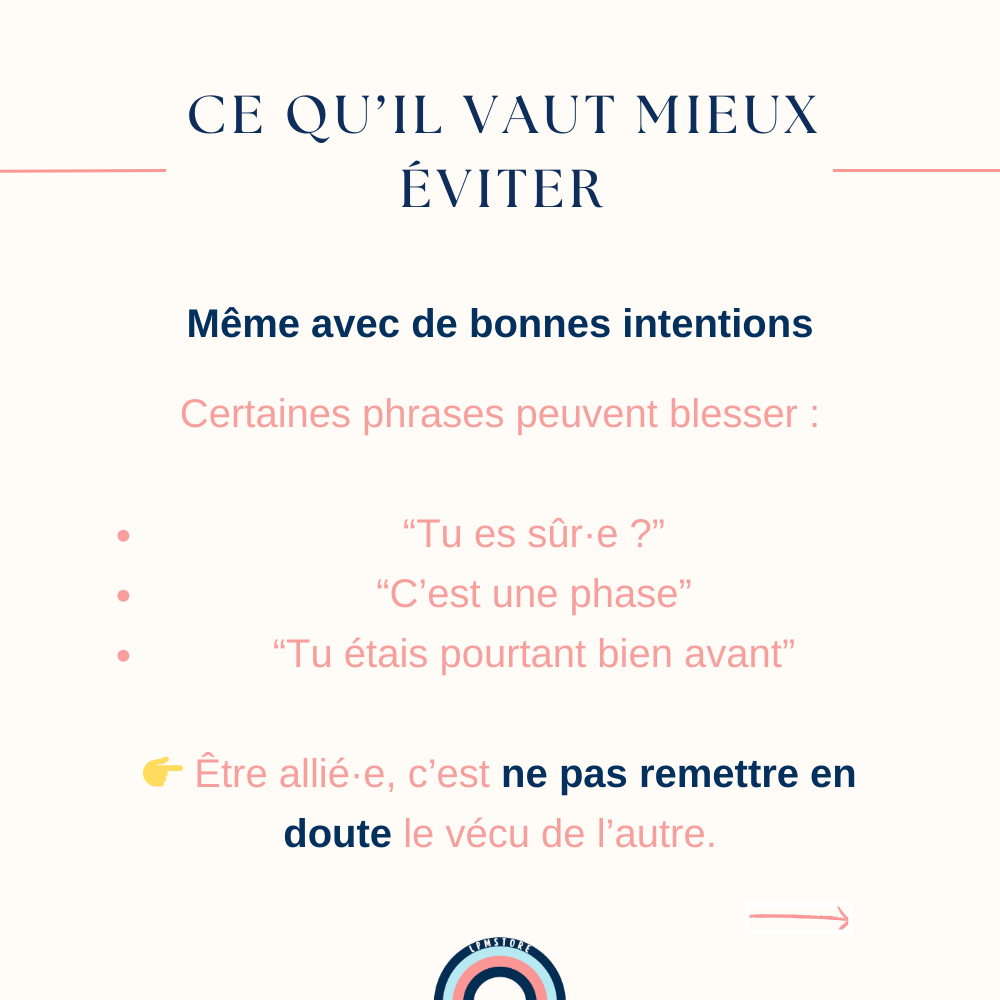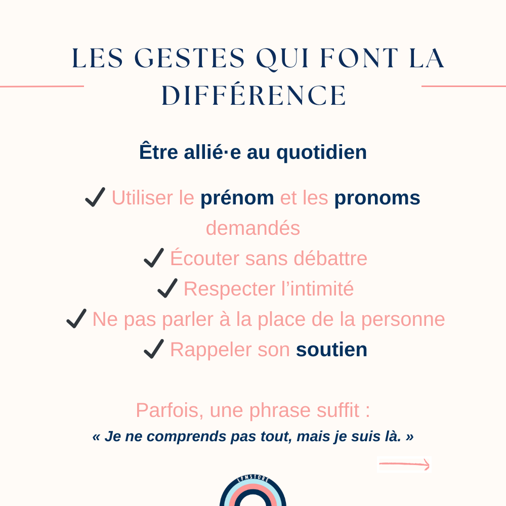 👉 Être allié·e, c’est accepter que le ressenti de l’autre n’a pas besoin d’être validé par nous pour être vrai.