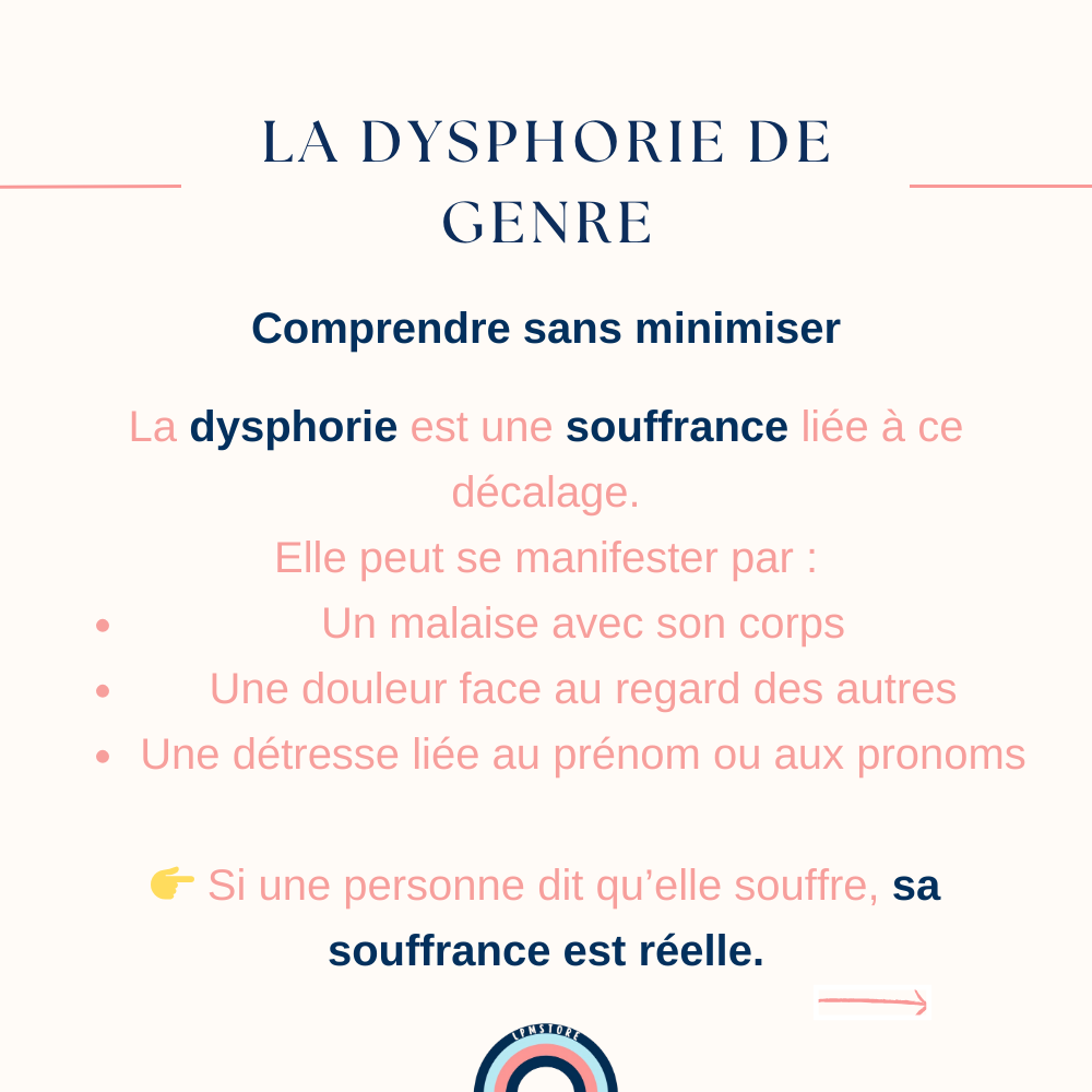 La dysphorie de genre est un malaise, une souffrance, liée à ce décalage.