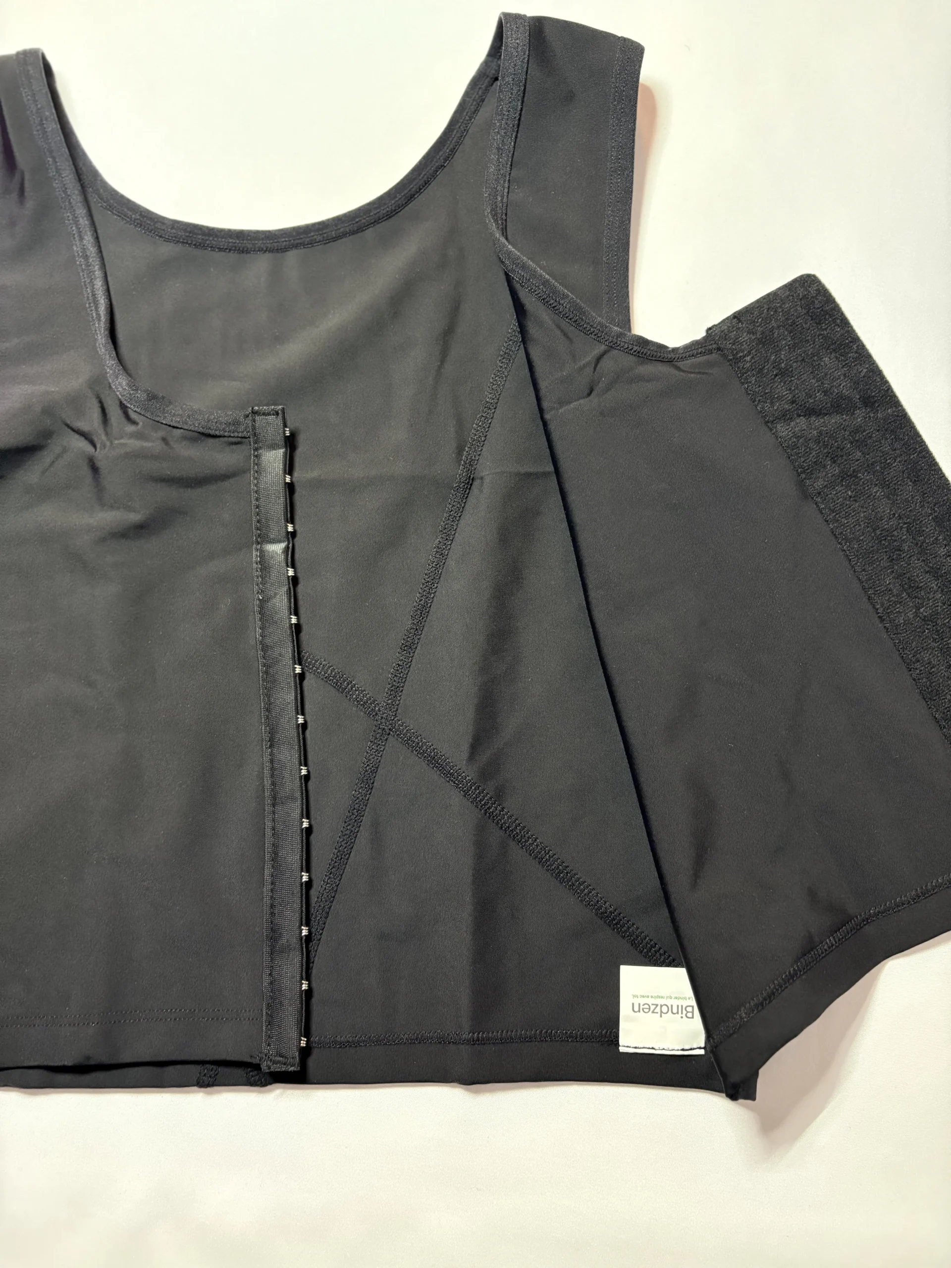 Si tu hésites entre 2 tailles, privilégie le confort : le binder ne doit jamais faire mal, gêner la respiration ou laisser des marques profondes.
